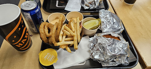 When there for work lunch with a colleague we each had a trio of the big Harvey. I think it's called or something like that and it was just shy of $20 each for the burger double Patty with an onion ring and a drink 20 bucks. So we order it's lunch time. It's maybe like 12:20. Not sure but we order and we see the guy. He has so many patties all piled up next to the grill and he takes two patties for each burger and puts them on the grill. They were already cooked so we're having like not fresh burgers. They're already cooked. They're not even in a worm jar. They have drawers but they don't keep it hot. It's just the little drawer to keep it in there. It's really not appetizing so it took a while to be served. They didn't remember to put in the onion ring cuz I asked for onion rings instead of fries. But sure enough as soon as there was onion rings ready the other guy was not serving me. Took them and gave them to someone in the car. A drive-thru so they prioritize car drive-thru over their customers. Waiting in line at the cash where I was so my burger was ready for a long time in the bag and they had to make a new batch of onion rings which I I watched the guy from the cash go and make so that took a long time. My burger already. Like I said the Patty was on the side of the grill so it was not hot that they just passed it on. The grill for a couple of seconds was not enough. So when I got my burger it was cold. My onion rings were too hot to eat and my burger was cold so and I'm also posting a picture of the napkins. They don't give you napkins. They give you a piece of a brown paper. They don't have napkins. I'll show you the picture. They have a brown vulgar roll that they tear off by hand and they give you like a piece of paper instead of a napkin. I asked for extra napkins. My friend didn't even get napkins in his bag and the bags. The napkins I got were pieces of paper. They had a whole pile of torn paper that they gave to everybody over there. They literally don't have real napkins. It's unbelievable. The service took long. The burner was cold. The price was high and the cherry on the cake was the napkin. You get some piece of brown paper. Someone tore off a roll by hand. Very nice to wipe your mouth with. Anyhow I wouldn't recommend it. The food wasn't good. It was very high price. One eat a burger and a fryer. You don't want to pay 20 bucks so I suggest to go elsewhere, anywhere or not around that building will be a...