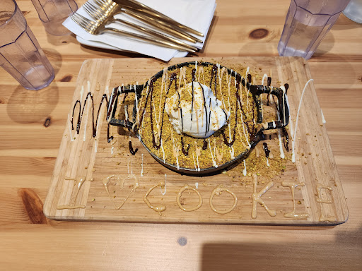 Read moreStumbled upon this gem on the way back from dinner during our stay in Montreal. We ordered the Pistachio cookie; which we were told would be 15 minutes to make. I would have waited 15 hours after experiencing this masterpiece of a dessert. First off, this is a two person adventure and my gf and I were up to the challenge. They bring a carafe of water to your table for a reason; it is the top 3 most decadent, rich desserts I have ever experienced. The cookie was fresh baked in the cast iron skillet to perfection and covered with a blend of various chocolates, pistachio pieces, and vanilla ice cream. The cherry on top was them adding the fun message at the bottom. Not very often do you order something and have it come out exactly looking like the menu and completely Instagram ready....this was. Final price was about $13 U.S. which we both agreed we would have paid double that. From the looks of it the rest of the menu looks just as good but unfortunately our Montreal trip only allowed for 1 visit there. Highly...