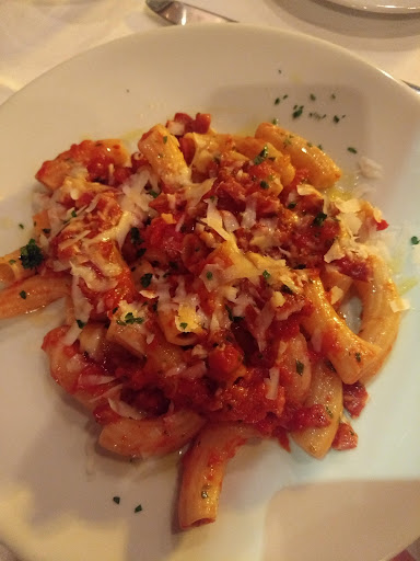 Tortiglione amatriciana for my main course. This was from their menu of Primi; there were also Secondi which sounded more substantial, which I didn't order this evening. The pasta were perfectly al dente. The lardons were crisp-tender. And there was just the right amount of sauce.
