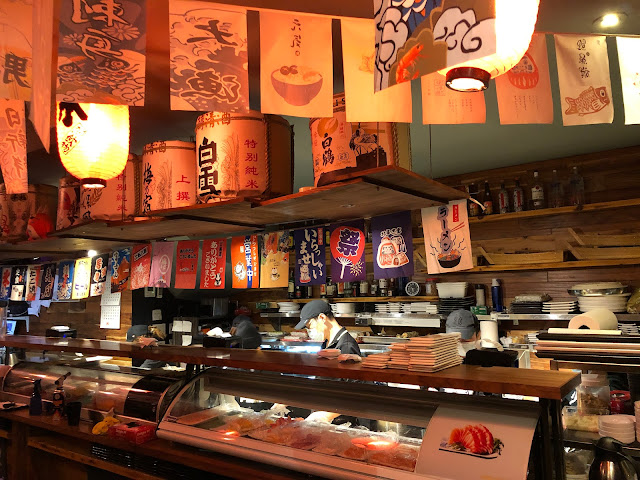 I went there on a Monday with a friend, it was jam packed even at 5:30pm. Good thing we reserved! The ambiance is really nice, narrowed not much place to move around, but thats what makes it awesome. If you don’t mind crowded and noisy, feel the joy having nice variety of sushi and having a great time with their loved ones. I am not too keen about sushi rolls in a all-you-can-eat-sushi place since they end up putting more rice than the stuffing, but looking at other tables people seemed enjoying them a lot. My friend and I went more for sashimis (raw fish) and nigiris (fish on rice), miso soup, seafood ramen, grilled shrimps (a-must!!) , fried shrimps, beef skewers, and so on. Oh and... when you eat sushi we cannot forget the “hot” sake. wow. It made my belly happy for an hour. I could have chosen a more expensive sake bottle but they usually come cold. Anywhere you go, they will give you the house sake hot. Which is a-m-a-z-ing with your sushis. Unfortunately a groupe of young high school kids seating behind my back were throwing water and screaming of joy as if they own the place, but I still had a great time.