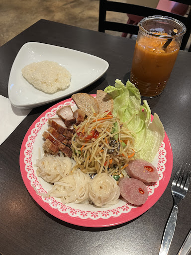 Read moreI don’t live in Montreal but discovered this restaurant on google maps using the key words “sticky rice”. Going through other review’s photos, I spotted a mixed plate with what looked like fermented pork sausage and I was sold. The mixed plate, which features papaya salad, fish cake, crispy pork, fermented sausage and rice noodles, isn’t technically on the menu, but when I showed them the photo from a past customer, they happily accommodated my request! The papaya salad was very good! Acidic, funky, crunchy, sweet and also featured salted crab which was very exciting to see and taste. Since my first time trying fermented pork sausage, I’ve been on the hunt for it in Canada and this one didn’t disappoint. This was super funky and garlicky, with that signature deliciously bouncy texture. The server was very friendly and curious about my interest in Thai food and after talking about our experiences eating at Som Tum Jinda in Toronto, she was excited to recommend me their durian coconut sticky rice dessert, which was also very good. I was told that they have only been open for 2 months which explains why the restaurant wasn’t busier during my visit- but based on the deliciousness, range in their menu, kind service and clean cute environment, I don’t imagine it’ll be this quiet for much longer. Excited to come back...