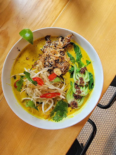 I have to start off with one of the stars of the show the Laksa. Absolutely show stopper of a soup, can't remember the last time I've had such amazing depth of flavour in a broth. Truly beautiful balance between savory, heat and umami. A elite move if u wanna take this dish to the next level in my opinion is to add the Sambal Belacan Chicken on top. It adds a layer of crunch and texture overall to the dish that to be really adds. You can also add anyone of their 3 in house Sambals to it, all were just amazing. The noodles had amazing bounce to them, the toppings all perfectly curated. Honestly a 10/10 dish, FOODGASMIC💦 to say the least! And I like to add, everything they have is gluten free!