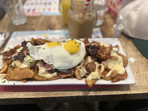 Read moreI went there to take a brunch and was not disappointed. The smoothie and the chocolate milkshake where good though a little expensive (~5$ each). When it comes to the food, we had 3crepes with nutella for my girlfriend (~10$ + 3$) and the extra nutella was not a joke. I was a huge portion and she didn't managed to finish it. Crepes were good too and she was delighted. I had the "Mega" eggs, which is 2 eggs, 2 golden bread, 2 sausages, potatoes, and bacon. I took the 13$ one (can come with a fruit cocktail for 16$) and it was huge. Flavors were really nice (the bacon was a little bit to crispy for me but I didn't ask for anything particular) and it filled my stomach just as I wanted. We had a cup of bread with that but couldn't touch it because our plates were too huge. I think it's a nice place, waitresses were smiling and quick to respond, but maybe a little too pricey for...