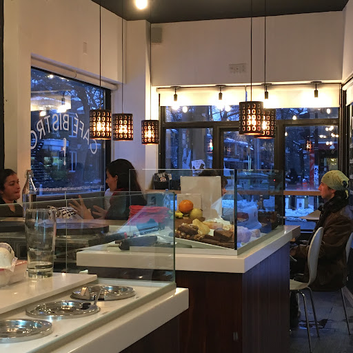 Read moreWith so many cafes in Montreal with virtually identical offerings - I was delighted to find this special cafe with it's feature offering of a variety of imported chocolate pellets from around the world. I really appreciate the vast variety of chocolate types as well as the detail they put in to help identify the cocoa %. The seating is limited, after I took the last table there was a queue of people that could not sit and it was too cold to enjoy the beverages outside. So might be best to go during non-peak times if possible. The wall is lined up with some cute chocolate figures but most of these goods are quite overpriced. I have not tried the food here. Service was alright, not bad but not...