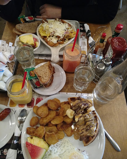 They gave a tiny container of syrup with each plate and I mean really tiny container of syrup which is smaller than a McDonald's dipping sauce that is to cover my two pancakes, fries, eggs and toast. It was so small that three of us asked for an extra container of syrup. I wanted to ask for more because I love a lot of syrup on everything and that is only when we find out that the really tiny containers of syrup cost $2 extra for each! When I heard this, I quickly said, no do not bring me anymore as I did not want to pay so much and ate my pancakes dryer than usual. It would have been nice if the server had told us of the extra cost at our first request; instead he said that it was common knowledge and that everyone knew of the extra cost....well apparently not since I knew nothing of this sort. He apologized and said he wouldn't charge us for the extra syrup; but when I got the bill, he charged us extra.