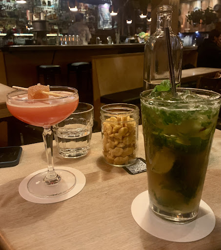 Read moreThis place was definitely on our must-do list when we visited Montréal last weekend and it did NOT disappoint. The 25 minute wait (at 9pm on a Saturday night - totally understandable) was absolutely worth it. The cocktails are freaking yummy and freaking strong, a combo I am yet to taste elsewhere. The service was outstanding and a pleasant surprise considering the place was packed. I understand why the place is so popular as they are super generous with the alcohol and flavors of fresh fruit zests, juices and spices really come through. Since the drinks are loaded with ice, they stay cold. Although, to be frank, the deliciousness ensures that you guzzle the drink after the first sip, so we did not have to worry about dilution at all. The popcorn soaks up the alcohol perfectly so that you can have an additional drink or two. Since we were seated at the bar, we were offered a table after a while but we declined since we had a front row seat to all the magical mixing taking place :)