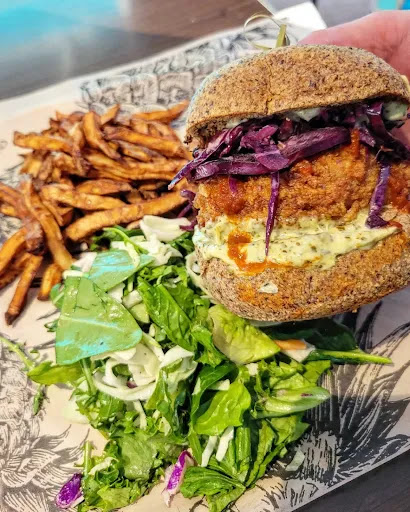 The food is fine, I guess. The crêpes don't have any crisp (which I expect from crêpes bretones) and the veggie patties don't hold together inside the buns. But those are details.
