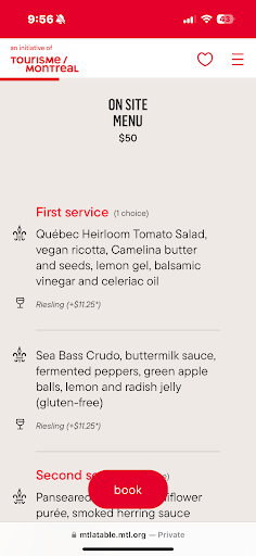 Read moreWe booked Le Godot through the “MTL à Table” event website, which clearly stated that guests could choose their menu. When we arrived, we were surprised to see only two printed set menus (A & B). Naturally, each person in our group of four selected based on preferences and dietary restrictions — one friend is pescatarian, and I’m lactose intolerant.