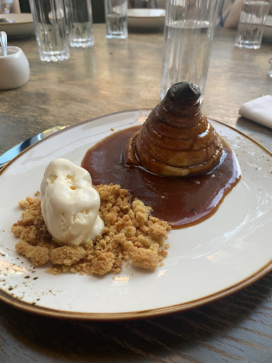 On the positive side, I was happy to find out that I didn’t have to order a tasting menu with everyone else which was very accommodating of them. I recently had a surgery that prevented me from having two of the meals on the tasting menu so I opted for a scallop risotto. For a dessert, I had their only option of the baked pear with a puff pastry on top and ice cream. Taste wise, food was delicious, clearly prepared with a lot of thought.