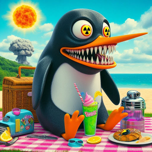 Et ainsi, Pingo devint une mascotte non officielle du Picnic VéloCafé. Chaque jour, il revenait pour son café et son muffin, apportant avec lui des sourires et des rires. Les clients venaient de loin pour voir le pingouin édenté et radioactif, et le café devint célèbre...