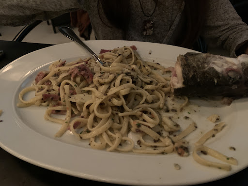 We ordered the razor clams, oysters as entree. The main course was Branzilon, Loup de Mer, a fish from the Mediterranean that is meant to be shared for two. The other main was Linguini, Speck, Amande, Chou-fleur, truffle-hachée.