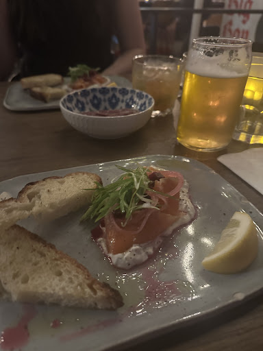 Excellent: service was truly amazing (she was funny, kind, attentive), ambiance and vibes were immaculate, our gravlax entrĂ©e left us speechless, good portions for tapas style, the matcha crĂšme brĂ»lĂ©e wow!, cocktails are expensive (â20$) but definitely worth it, and 3 course for 25$ was a steal. Focaccia was amazing too.