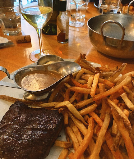 Food is extremely good. Classic, well made, well presented. Daily specials are especially good. Service was efficient and friendly. Couple of things: paper napkins seem out of place given the price of the dishes; upholstery on the seats was completely worn out and is in dire need of a refresh; the table top was sticky; the front door would get stuck half open and a cold draft would come in, and my husband had to repeatedly get up and close it; they didn't change cutlery after the appetizers, even if they were completely crusted with melted cheese; Beefeater as a gin is sad given how the multitude of local choices available; soup spoons to eat our dessert was very weird. None of those issues is a deal breaker, but they add up! We loved the food, but the experience surrounding it was a bit sub par, so I can't give the place five stars,...