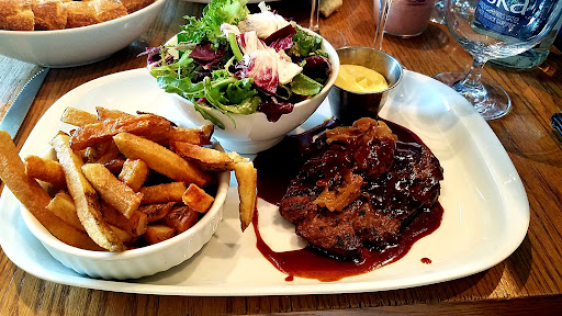 Read moreRetro looking bistro inclining towards a classic fine restaurant. A bit pricey though. It is worth visiting once or twice, but that's it unfortunately. Their food is ok-ish. I give, a rare for me, four stars to Les Cavistes simply the kitchen's saucier made a much better job then the chef who grilled my cheap-cut steak. In fact, the sauce was notice-worthy I should admit. I cannot say the same for their pasta, which lacked the essence of oily-spicy-aromatic textural balance. If not the sauce, what's in pasta??? The apperatifs tray was aesthetically pleasing yet harbored ridiculously small quantities. I simply was not impressed by it. During covid-19, they let you scan a q_code and the menu miracalously appears on your phone, if you will be moved by the action. Overall, I recommend this restaurant for the uninitiated to...