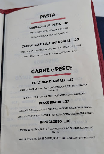 I was served and guided through the menu by Marie-Hélène, fantastic friendly service, diligent and truly concerned about my enjoyment, when I asked for a glass of red 🍷I was served Lunatico 2020 (Dei Agre di Cesi Marta - Puglia, Italia) well balanced, with body but not overpowering, on Marie-Hélène's recommendation I began with a Primi of zucca, where the spaghetti squash, ricota, spicy honey and pumpkin seeds gave a smooth and rich experience that I thoroughly enjoyed, the perfect opener, I followed with a plate of mezze maniche pasta alla Monzese, the italian sausage, saffron cream, raisins and anisetta were the perfect compliment, rich creamy, the pasta al dente and rich flavours of the saffron and anisetta pleasantly lingered in my palate... I usually do not eat dessert, but I had to oblige given the great previous experience with the zucca and maniche, so I asked Marie-Hélène for her recommendation, I was between the torta di pistacchio and the torta di cioccolato with roasted almonds, and given my previous choices she suggested la torta di pistacchio... by then I wanted to round up the Italian experience with a digestivo, so I kindly asked for a glass of Liquore Strega, that sealed the deal, the torta di pistacchio was spongy, humid, not too sweet and with the flavour of pistacchio lingering ever so lightly in the mouth. I loved visiting that first time... then I had to repeat and change the menu on my last evening in Montreal.