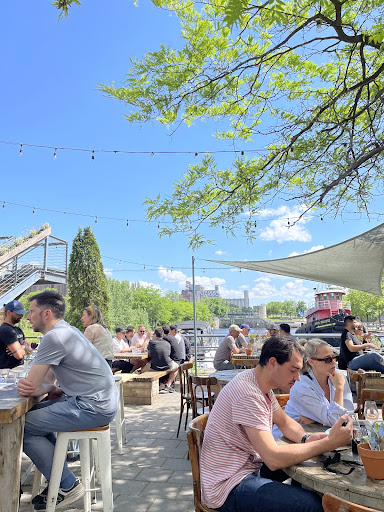 Pros : On the other hand, probably the prettiest terrace of Montreal. Reason for it is the clientèle that is very different from most of the other terrace (specially in old port). It's calm, fun, cute, not crowded, fill with "normal people", good chill or festive music at perfect volume (not too loud so you can easily talk but not too quiet so you get the ambiance vibe). There is no stress, a perfect place to chill for a long or a short period under the sun. People go there to relax and chill, not to party and show that they have cash.