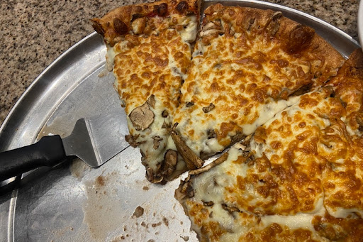 Good Pizza. Could be AWESOME with easy changes. Pros: VERY Generous toppings, REALLY hot out of the oven, cheese nicely browned, with the classic pizza dough ball in the center to prevent the box from sticking to the pie! They even added masking tape to keep the box secure during transport. I appreciate this attention to details.