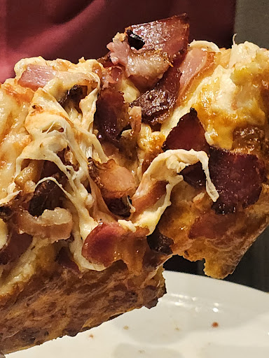 Although the pizzaghetti was tempting, I decided to go with the classic pepperoni option and save the new for another time. My +2 went with the bacon option. Something cool that the pizzeria permitted us to do is to split the entire pie into 2 sides. One side with only pepperoni and another side with the bacon. Super cool of them for that.