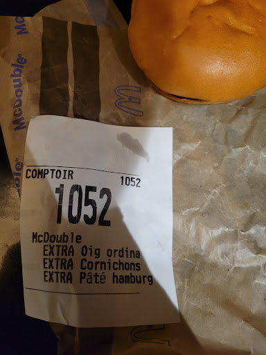 Read moreI place a order to go , vanilla icecream cone, two chai latte frappe, an trio quart de livre blt burger with large fries, an double big mac burger with extra pattie , extra onions and extra pickle.