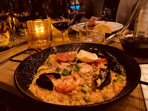 Read moreSuch a great restaurant! We came here to celebrate our daughter's birthday, she'll be going to Spain in the summer and we wanted to give her a taste of it already. Such a great place to do so! While the menu isn't very big, there should be something for everyone, and don't be shy to try new things! Service was fast, we were already munching some fried calamar (Calamares con salsa brava - delicious, very tasteful) and Croquetas de jamón within 10 minutes after ordering, and our main course came not too long after we finished those. Our waiter, Andy, was very friendly and helpful, and stepped by for a talk now and then. My daugher had hoped to eat churros for dessert, but they only serve them for brunch.. but the waiter promised something to make her forget the churros and brought out a «Éclair» de turrón (nougat eclair) with a candle. It was delicious indeed! We had arrived at 7pm and the restaurant wasn't full yet, but probably an hour later the restaurant was full, with a very nice atmosphere, not too loud, lighting dimmer as the evening went on and some nice music without it being too loud. My daughter, and all of us loved the whole experience. Definitely will...