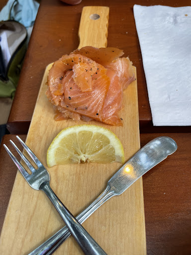 Really happy to have found this as we walked looking for food. It was late on a Friday when we got into town and we are not familiar with the area, and this did not come up when we did a Google search for food. I was hoping for more of a meal, but was impressed by their easily shared snackable options! This place is the perfect hangout for some sociables! Lots of charcuterie style options that you can mix and match, but I wasn't really in that vibe unfortunately at the time. We ordered nachos and while the salsa was delicious and my partner really really liked it, I wish it had been on the side instead. LOVED that it had black olives, but cheese was the only other topping and there was a little too much of it and it wasn't great cheese... Wish we could have had tomatoes and onions if not a little lettuce but it still hit the spot. Also wish my Caesar had a celery stick with the bacon bites as I was just trying to get some green into me by ordering it since there were not really any options to round out my meal on the menu... Again, GREAT snacks and fairly healthy options since hardly anything was deep fried and they didn't seem to have french fries, but no real entrees offering a balanced meal (just so you know ahead of time). Could see this being a favourite hang out of mine if I lived in the area and would totally...