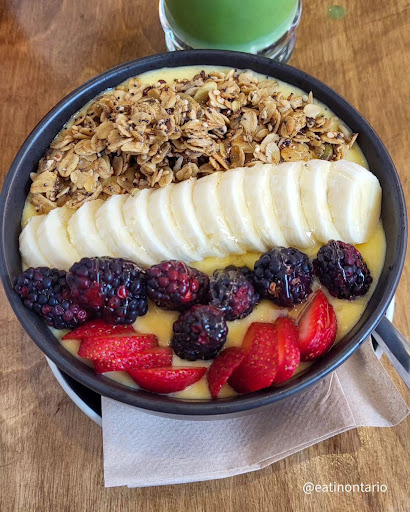 During my first trip, I got the Sous Marin L'Omelette (transl. Omelet Submarine) and the Healthy Green Smoothie (the café's signature smoothie). Combining the flavors of egg, onions, peppers, caramelized mushrooms, mozzarella, and spicy mayo, the omelet was fluffy and tender, with a slightly creamy texture. Washed down with a green smoothie, it made for a perfect breakfast as I geared up for a long day organizing my documents! However, the second time I went there was the true highlight! A heavenly peach mango smoothie bowl that combined the sweet flavors of two of my favorite fruits, combined with an iced matcha latte with vanilla syrup - the meal felt like a droplet of heaven while I sat in a quaint café in a picturesque town. C'est divin! Should you find yourself in Montreal, I would highly recommend a visit.