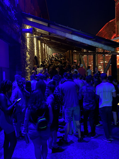 Incredibly long line to get in to a ticketed event, even for a late night venue standard. Once in you can clearly see why. Many security and staff just standing around making sure you go downstairs and into the bar once past security. Maybe you should help ticketing staff and security staff get people in the door before yelling at them to "go downstairs." I counted 2 or 3 max people scanning tickets, while there was a crowded line as long as two flights of stairs packed with people.