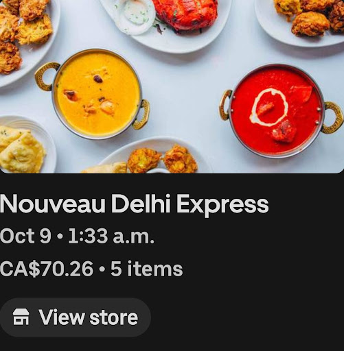 Read moreWorst experience ever!! AVOID THIS RESTAURANT!!! I ordered a butter chicken with naan bread at 9:00pm... the guy on the phone tells me the total would be 20,87$ and he also asked how am i going to pay, i said credit. One hour later i received a call from new delhi from the same guy, asking me if i have cash to pay for the food?!? I said yes i do, when am i going to receive my order? The guy told me i dont know?!?!!?? I ended up receiving my order at 11:30..... BUT WAIIT!!! When i opened the bag first thing i notice is the naan bread.. covered in a paper towel?!? BEST PART IS HERE: so i opened my butter chicken (i was really craving it) and i saw some dry grapes in it?!? At first i was like ok 3-4 felt in it when they were cooking it but there was litteraly 30-40 of them.. and it didnt taste at all like butter chicken..! I threw everything to the garbage, even the rice, wich i would not even give to my dog. BE CAREFUL AND AVOID THIS RESTAURANT ( i ended up...