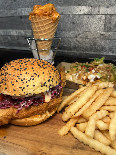 On first look the place looked empty which was surprising to me on Saturday night 10pm ignoring that me and my friends just wanted to try something new so we ordered few things Nashwill burger and fried chicken and Korean wings and but everything was tasteless nashvill burger was just dry frozen patty with some d’aide on top nothing like real life , wings were tiny , and fried Chiken ? Fried Chiken was nothing like Nashville Chiken it was just normal dry low coated Chiken with some random sauce on top burgers were dry with small. Patties like frozen and fries were normal cavindish farm fries which we enjoyed but who puts full lettuce in the burger like literally a whole stick and lettuce in burger and imagine the burger price total bill was 80 dollars for frozen patty burgers the top pictures are lie don’t waste your money go somewhere else and if you are someone who likes clean places than this store is not for you just look at floors and bruh the menu tv were not even open ( I am too sensitive about my food and it was waste of money...