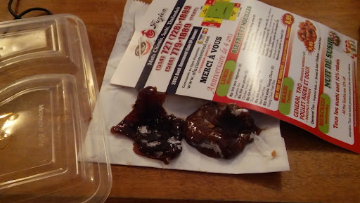 Read moreRubber sauce. No kidding, just look at the picture. To us, it tasted, looked like and had a texture of microwaved leftovers. It even came in "microwave safe" little lunch box. The rice had absorbed a lot of humidity and my sauce was about to turn into a hard candy, with a burned aftertaste.