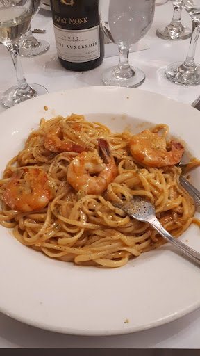 The menu had already been chosen by the staff. We started with calamari for everyone at the table, along with a choice of salad or soup (either lentil or squash). The main dishes consisted of steak, chicken, and salmon, with coffee provided but no desserts included. Each person was required to pay $40, and any additional orders would be added to our bills. It’s also a bring-your-own-wine establishment.