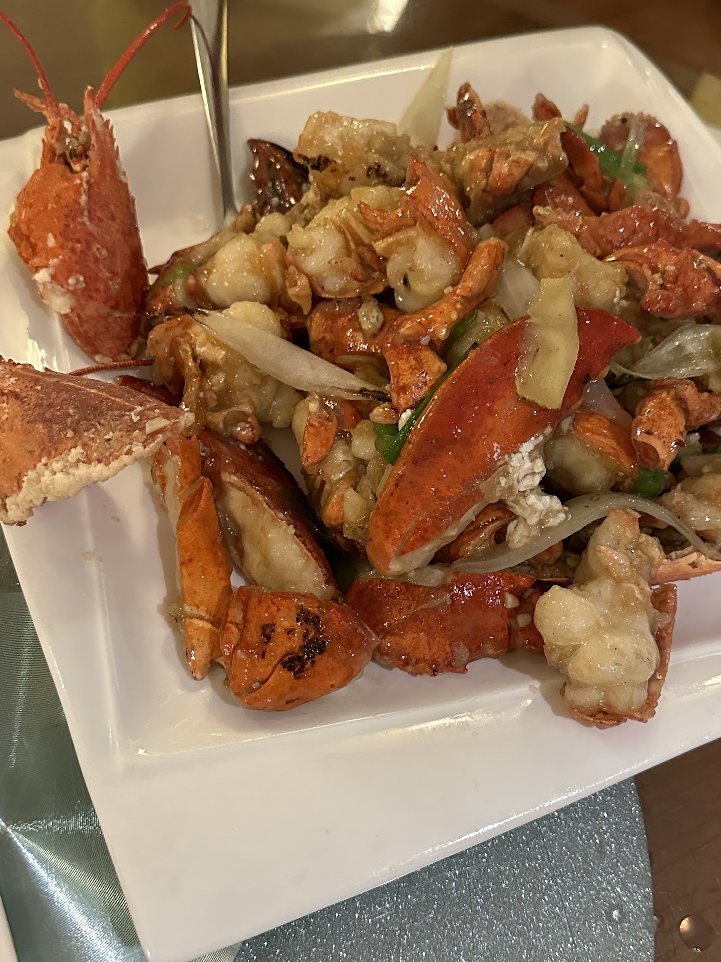 Ginger Lobster Fried shrimp chili Chinese brocoli Steamed giant oyster black beans General Tao Clams with sauce Chowmein Mapo tofu Green beans garlic