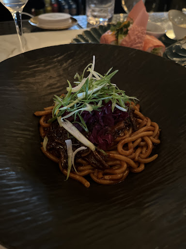 Thought that the food would save the experience but I cannot imagine this food being enjoyable to anyone but a person whoâs never had good Asian food (theyâre going for Japanese fusion from the looks of it). Ordered the two udons they had, which were basically just the same (bad) yakisoba but with different toppings. The mushroom one was not the worst but the other one gave me horrible flashbacks to the carbonara episodeâit was so salty. But not salty enough for me to risk getting gaslit for sending it back so I continued eating it but couldnât finish. The truffle fries tasted bland because they drowse every dish (including the udon) in truffle oil and the sushi roll we got had this âuniqueâ wrapper that would get stuck to the roof of your mouth. I was barely able to get the food down because the whole thing being stuck was triggering my gag reflex. We couldnât finish anything even though we got there hungry. And we usually always finish our food, unless if we ordered too much weâd take the rest home. But yeah, this is the type of place where u donât even want to take your leftovers to go. Crazy concept, I know.