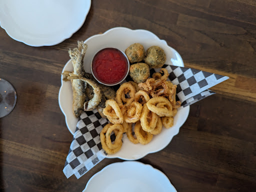 Read moreHonestly? I did go in not knowing what to expect, but it’s a nice space with outdoor seating and it looked popular from the way people continued to stop by and sit. But they had like two people on the floor and only one was serving food and taking orders. They told us the food would take about fifteen minutes and the menu was small and solid looking. We ordered an appetizer the calamari, and it ended up taking around thirty minutes to get a small plate of bland calamari that tasted more like graham cracker and the lemon saved it. We ended up waiting around forty something minutes in total for the shrimp & waffles that was a browned and dried waffle with bizarrely three fried whole shrimp on top and a smear of dark green substance that was supposed to be guacamole and limp shishito peppers. The whole thing was dry and the waffles tasted more like baking soda than jalapeño and whatever else was supposed to be inside. The shrimp was cooked to a weird consistency. I didn’t enjoy the meal especially because the wait was so needlessly long. I can’t imagine stopping here...