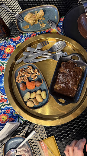 As for the food, I ordered Pan Kabab, which was decent, and Ash, which was delicious. We also had two cakes and two lattes, both of which were very good. However, another odd experience happened with the bill. During our meal, the waitress insisted we try garlic pickles, and later, after we had finished our dessert, she enthusiastically offered us another type of cake: Ghotab, saying it was fresh and delicious. Her tone and warmth made it seem like a complimentary treat, so we were surprised to find everything—including the pickles and the extra cake—added to the bill. It wasn’t about the $7 extra, but the way it was done left us feeling a bit manipulated.