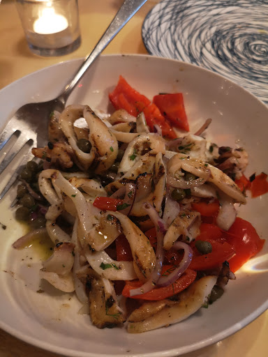We got multiple seafood entrées including the grilled calamari, octopus and scallops. While the first two were delicious, the scallops were overcooked and chewy. Also, there were only four tiny scallops for 24$... The beetroot salad was so inconsistently chopped and the cheese was almost inexistant.