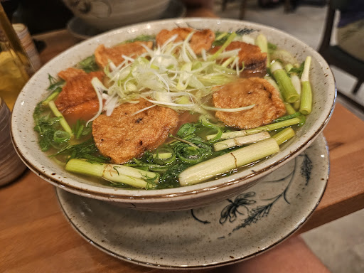 Their rib pho is absolutely outstanding. As someone who's had this dish in Toronto, I'm thrilled it's finally available in Montreal. The portion is surprisingly generous - we had to share! Two large ribs come with meat so tender you can effortlessly spoon it off the bone. They serve an additional bowl of soup with a bone with plenty of tender tendons. What really sets them apart is their broth - you can tell it's genuine by its rich, deep color. Unlike many places that rely heavily on MSG (leaving you thirsty afterward), this is clearly a real, well-made consommé.