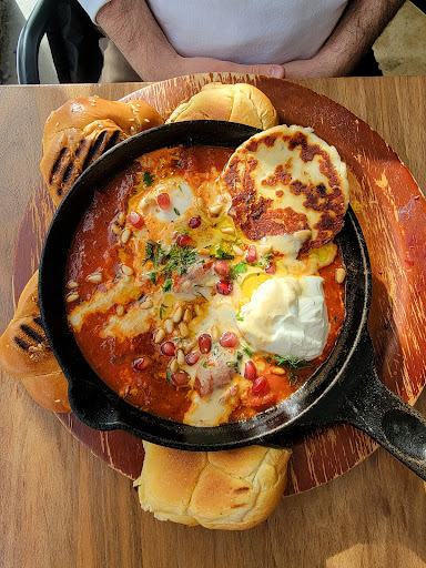 Read moreI was at the restaurant before it was this one and they refurbished it beautifully. The service was superb from the two slender and iron deficient guys that were looking like they needed a good meal, which was ironic. The young lady with the leopard top and great nails and really good eye contact, was most helpful. The menu was broken down into half complete booze so I guess it's abusatorium, and then one small section for breakfast but bigger than the other sections which were called lunch and supper. My meal came highly recommended from one of the guys and the waitress and it was very weird. But it was interesting and it did have some interesting taste as well as appearance. But poached eggs buried underneath some sort of red sauce with a bunch of stuff in it and a bun cut in half and then hacked again and toasted and the old piece of Middle Eastern bread and a nice lump of lebna goat cheese, and it was certainly something I hadn't seen before. My buddy Angelo, former owner of a famous Italian restaurant, had something more traditional and he liked his. The fries were surprisingly entertaining because they were shaped more like a waffle except with crisscross pieces with spaces between them. Very creative, reasonably tasty but definitely visually entertaining.. Both the excitement and the drawback all at once was the acoustics that had everybody's conversation from every square into the place in your ears. It was loud. But that doesn't mean that's bad... As I do go to an Italian restaurant in the West Island of Montreal that's very big and acoustically also challenging where you walk in and you have to practically yell at your friend who's standing right beside you to be heard. This was kind of like that . Definitely an interesting place and probably as the bar even more interesting. . Would I go back again for just the main course and what it cost, it's okay. Certainly a lot cheaper than covid-19 prices in many places but nothing cheap about the place at all otherwise. . One thing I don't care for however is their machine that takes your credit cards and it starts at 18% and goes up from there. The last two buttons on the screen to choose from are assigning your income to them and then assigning your home to them. Hahaha kidding but it felt like that because 15% was under choose another percentage. And remember that you're not supposed to tip and count the percentage on the tax but before tax. So when you pay 15% you're actually paying a fair bit more. There was no need for it to start at 18% tip! I find that... off-putting. . Otherwise I'd give the restaurant somewhere between a 3. 6 and a 4.1 . I deleted people's faces...