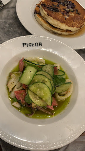 Read moreI was at the restaurant before it was this one and they refurbished it beautifully. The service was superb from the two slender and iron deficient guys that were looking like they needed a good meal, which was ironic. The young lady with the leopard top and great nails and really good eye contact, was most helpful. The menu was broken down into half complete booze so I guess it's abusatorium, and then one small section for breakfast but bigger than the other sections which were called lunch and supper. My meal came highly recommended from one of the guys and the waitress and it was very weird. But it was interesting and it did have some interesting taste as well as appearance. But poached eggs buried underneath some sort of red sauce with a bunch of stuff in it and a bun cut in half and then hacked again and toasted and the old piece of Middle Eastern bread and a nice lump of lebna goat cheese, and it was certainly something I hadn't seen before. My buddy Angelo, former owner of a famous Italian restaurant, had something more traditional and he liked his. The fries were surprisingly entertaining because they were shaped more like a waffle except with crisscross pieces with spaces between them. Very creative, reasonably tasty but definitely visually entertaining.. Both the excitement and the drawback all at once was the acoustics that had everybody's conversation from every square into the place in your ears. It was loud. But that doesn't mean that's bad... As I do go to an Italian restaurant in the West Island of Montreal that's very big and acoustically also challenging where you walk in and you have to practically yell at your friend who's standing right beside you to be heard. This was kind of like that . Definitely an interesting place and probably as the bar even more interesting. . Would I go back again for just the main course and what it cost, it's okay. Certainly a lot cheaper than covid-19 prices in many places but nothing cheap about the place at all otherwise. . One thing I don't care for however is their machine that takes your credit cards and it starts at 18% and goes up from there. The last two buttons on the screen to choose from are assigning your income to them and then assigning your home to them. Hahaha kidding but it felt like that because 15% was under choose another percentage. And remember that you're not supposed to tip and count the percentage on the tax but before tax. So when you pay 15% you're actually paying a fair bit more. There was no need for it to start at 18% tip! I find that... off-putting. . Otherwise I'd give the restaurant somewhere between a 3. 6 and a 4.1 . I deleted people's faces...