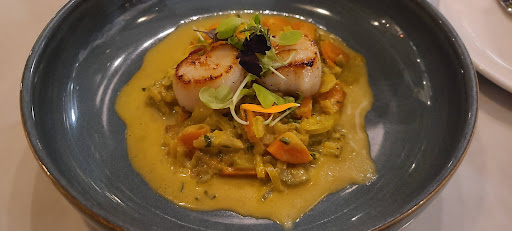 I started with the Magdelan Island scallops, seared, vegetables, coconut milk, curry and clam juice. This was an $8 up charge to the prix fixe, but I couldn't resist the chance for some local scallops.
