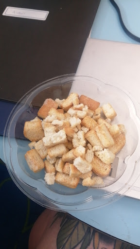 Cette semaine, nous avons dĂ©cidĂ© de laisser une deuxiĂšme chance puisque nous avions entendu parlĂ© des baguettes farcies. Une fois de plus nous avons Ă©tĂ© déçues. AprĂšs le prix, l'attente (encore une fois) de 40 minutes, le cuisinier qui mange en cuisine, pas de filet pour la barbe, deux caissiĂšres extrĂȘmement mĂ©langĂ©es, (elles m'ont donnĂ© la commande d'une autre personne, pour ensuite s'en rendre compte), pour finalement m'annoncĂ© que les cuisiniers avaient brĂ»lĂ© ma commande... et qu'ils avaient ajoutĂ© du bacon pour palier l'erreur (sans me demander mon avis). Bref, j'accepte parce que ça fait dĂ©jĂ 40 minutes que j'attends et mon heure de diner finit dans 20 minutes. Finalement, je reçois ma commande, j'avais commandĂ© du poulet ĂPICĂ et je n'ai jamais mangĂ© quelque chose d'aussi fade!!! La baguette Ă©tait trĂšs mouillĂ©e, en croquant dans les champignons, j'avais l'impression de boire un verre d'eau.