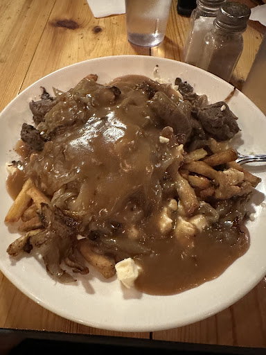 Therefore service was a 1 star. Food was 2 stars. My poutine had black burnt fries in it. Employees don't understand that service is an important part of their job. Aswell I noticed, they're clearly miserable. 1) Management needs to provide better working conditions. Clearly they are understaffed. 2) However management also needs to give a training on how to treat customers. The waitress especially has some anger issues she needs...