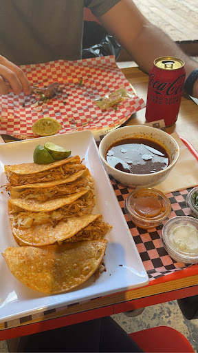 First and last time we go. The food was horrible the restaurant is very dirty including the kitchen doesn’t meet the hygiene guidelines requirements. The chilaquiles are done with chips and not with tortillas de maiz the sour cream and cheese were left out in counter smelled like it was rotten the taste was off the quesobirrias we soaked in oil lack of flavour meat tasted like it was done a few days ago … the salsas weren’t good have tasted better we ordered pico de gallo and guacamole it was so salty we couldn’t eat it . Also the serves are diffrent people and they run around with back packs on their back didn’t understand that one very not professional. I felt like I was in Queens New York . And we finished the night sick and throwing up I do not recommend this place . It’s not what we see in tiktok. Never again !!!!! And to finish off this review if you plan to go to the women’s bathroom hold it in until you find yourself a clean and decent bathroom this bathroom was dirty and runned down with no...