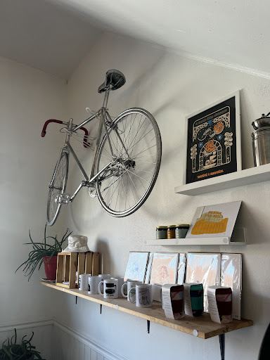 The atmosphere is warm and very European in a way I must say. It reminds me inside of the little bike cafes in Germany and Holland. The service is super friendly and you can have your bike checked up or fix a flat tire….. Regarding the prices, it’s a little costly but times are rough for everybody, they have to make a living and I am glad I can support that cozy little spot, which hopefully will be around for many years to come. I just got my Racer Cafe shirt two days ago. 🤘