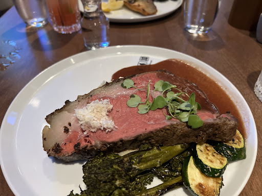 The service was weirdly fast, almost as if the plates were prepared in advance. I had asked that my steak be cooked (BLUE) and I had to explain to the server that that is even less cooked than (RARE). The $72 steak, a Faux Fillet, that I had received was grey-brown inside, not red, not even pink. My Brother in Law's chicken was so dry and meager, that I gave him half my steak because I felt bad about his chicken . The Veggies were seasonal and not overcooked, yeah. We weren't even served bread at the table. When I asked the server why there wasn't any bread served, and she brought us bread as I was finalizing payment. Timing is everything.
