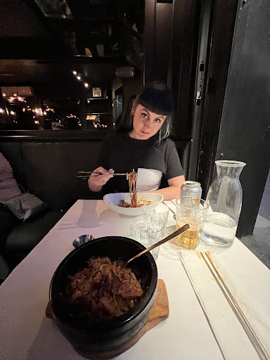 Read moreLOVE LUNA!! I went to this little place for my birthday and it did not disappoint. Everything I put in my mouth was delicious AND it's a BYOB. I will be back many times, for sure. Service was impeccable and quick, almost too quick! I like to linger a bit after my amuse bouches and take in my surroundings before diving into my main meal, but I'm a bit of a savage and will demolish my entire meal without hardly taking a minute to breathe, so.. That's on me. I got the Japchae with pork and Mr.B got the Bibimbap, also with pork. Although I loved mine, I was jealous of his. The Bibimbap arrives in a hot bowl on a wooden plank and it stays hot for a long time!! Like, I was done devouring mine and his was still hot when I finished it off for him! Impressive. I will order that next time. Maybe with beef. LOVE the all black atmosphere, this was the reason I picked this place, honestly, but it did look nicer online than in person. Still very goth and intimate, don't get me wrong, but it lacked something to add more sparkle. Maybe just some candles? It's also possibly more magical if you sit deeper within the darkness; I was sitting right next to the giant garage door sized window. My new favourite...