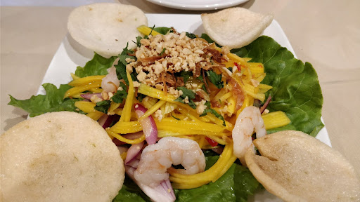 Read moreI don't always finish my plate, but I did at this restaurant! The food is both delicious and pretty. It's definitely one of the best Vietnamese meals I have ever had. We started with a mango salad appetizer. It was fresh, light, refreshing, and delicious. The mint and peanuts on top added an extra flavor and texture. The only thing is that it said it has shrimp, but it came with about 2 shrimps cut in half; so about 4 pieces. For our main dishes, we took the pad thai, and pork chop plate. The pad Thai was extremely fresh and the vegetables were not made from frozen produce. It had a lot of vegetables, a generous quantity of chicken (which was very flavorful too), and 2 medium-sized shrimps. I was very pleased with the flavors! The pork chop plate was very generous too. The meat was well-seasoned and cooked just right! It was juicy and spot on! The salad was a normal side of lettuce, a tomato, with marinated carrots. The rice was normal but the juices of the meat marinade really added flavor to it. We finished with fried bananas. It was perfect to share! The batter was thin and light, the banana was very delicious and melty on the inside. Overall, it is definitely not the last time we come here....