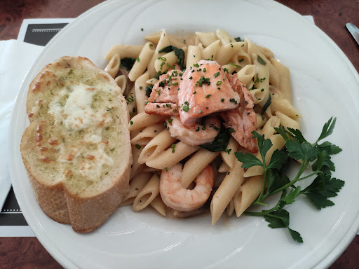 Read moreJ'y suis allée samedi, choix de dernière minute. La serveuse n'était pas à l'écoute. Elle a oublié de commander mon entrée et vu que ça faisait longtemps qu'on attendait, je lui ai demandé si ma soupe allait arriver avant les plats principaux, c'est là qu'elle a réalisé qu'elle ne l'avait pas commandée. Les enfants ont aimé leurs spaghetti. Ma fille avait pris les penne tomates séchées et elle a aimé. Moi, j'ai commandé des linguini Alfredo et c'était carrément insipide! Je n'ai pas terminé mon plat malgré que j'ai ajouté sel, poivre et parmesan. Le dimanche nous avions une réservation. La serveuse Manon 4 *, le 2 * étaient pour la serveuse de la veille. Manon est à l'écoute et gère bien les demandes. J'ai finalement eu ma soupe à l'oignon… elle était extrêmement salée! Je suis quelqu'un qui à la base, mange plus salé que les autres alors pour que je dise qu'elle était extrêmement salée c'est que c'était affreux. Nous sommes 2 à avoir commandé la bavette de boeuf et nous les avons retournées car c'était trop cuit... nous avions demandé médium/saignant. La sauce qui accompagnait la bavette était aussi insipide. Je crois que le chef ou les cuisiniers ne goûtent pas en cuisinant. Le secret lorsque tu es cuisinier c'est de goûter constamment lorsque tu fais ta préparation... ou bien ils fument trop et ils ont perdus le sens du goût... Dommage... Le stationnement est petit pour la grandeur du restaurant. La déco fait 1990. Si toutes les serveuses étaient comme Manon le service serait bien. Sur ce, il y a grande place à l'amélioration! Petit conseil d'expérience: Moins de choix sur le menu permettra de porter plus d'attention sur la préparation des plats et cuisiner avec...