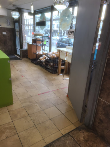 The building is a bakery and sandwich shop. Breads, cakes,...