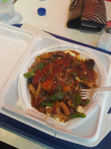 Le cuisinier peu sympathique fait le sous marin il haché le steak en petits filaments et c'est sec, ça semble pas frais. Les légumes ne semblent pas frais (champignons) il ajoute de la vinaigrette à profusion sans que j'aie le temps de lui dire que je la voulais à part. Les frites étaient graisseuses +++ peu égouttées. Quand même bonne, grosse quantité. En fait j'ai mangé avec dégoût p.c.q. la fille lui dit qu'elle est malade. Je remarque que le cuisinier a les ongles noirs, grugés. On ne m'a pas offert les condiments pour les frites. Rien sur les tables. J'ai dû aller au comptoir pour avoir ketchup, mayo etc... Je n'y retournerai plus. Intérieur déprimant et pas...